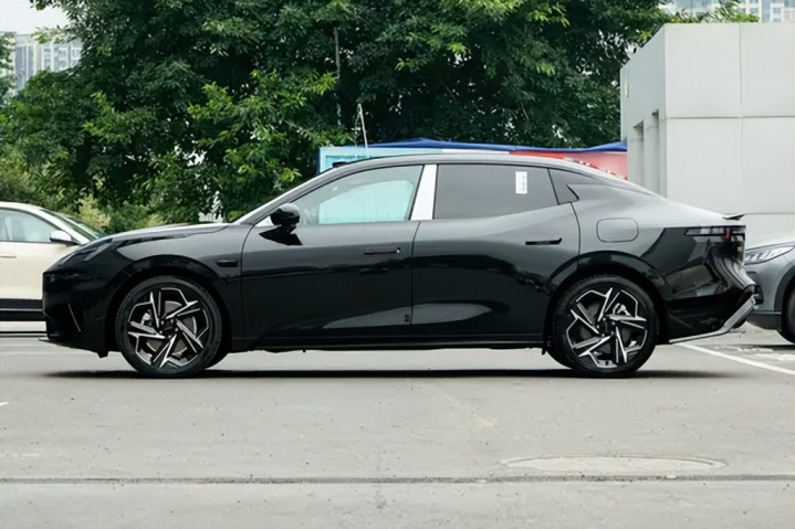 车身侧面,无框车门与隐藏式门把手带来简洁平滑的观感。车顶采用溜背式曲线,使得整体姿态更接近轿跑风格,符合年轻群体的审美。